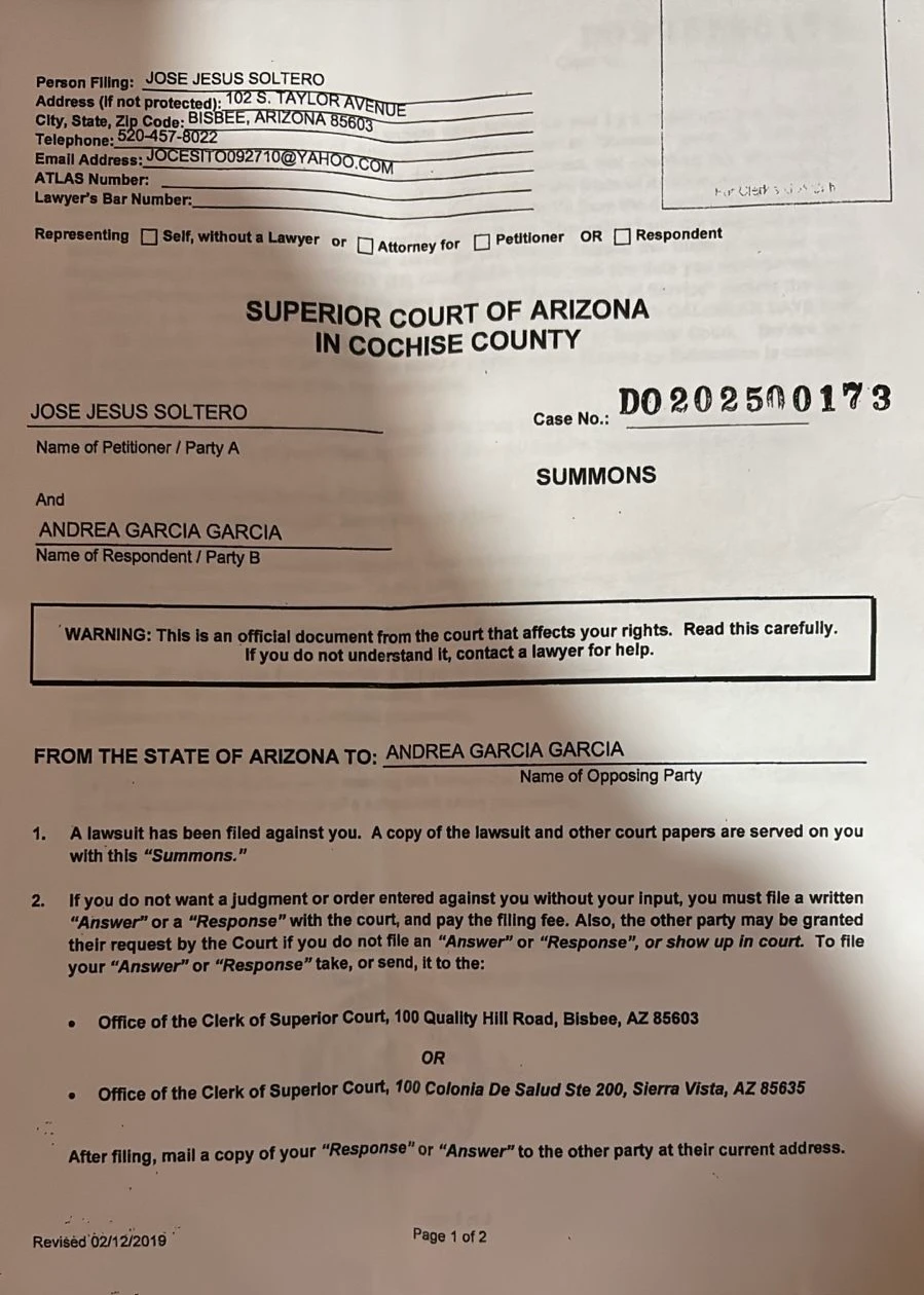 Se hace del conocimiento público que JOSE JESUS SOLTERO, en calidad de parte peticionaria (Parte A), ha iniciado un procedimiento legal en contra de ANDREA GARCIA GARCIA, como parte demandada (Parte B), ante la autoridad correspondiente.